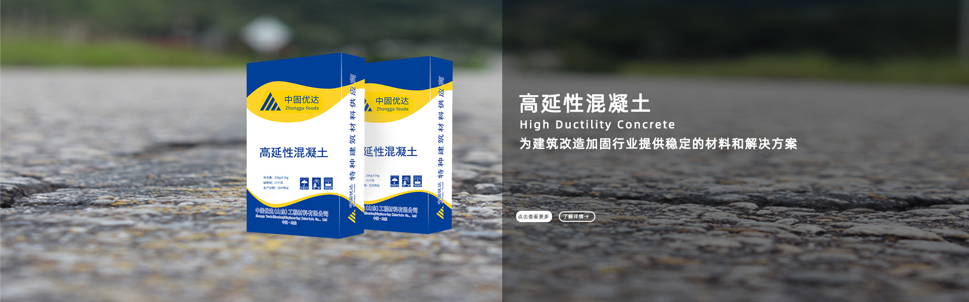 高延性混凝土是具有高抗裂性、高延展性、高韧性、高耐损伤的一种高富纤维混凝土,采用特种水泥和骨料,辅助高韧性高弹性纤维和外加剂混合而成,现场加水固化后,具有裂而不断、破而不碎的特性,特别适合各种加固修补的梁板柱以及路面的修补。